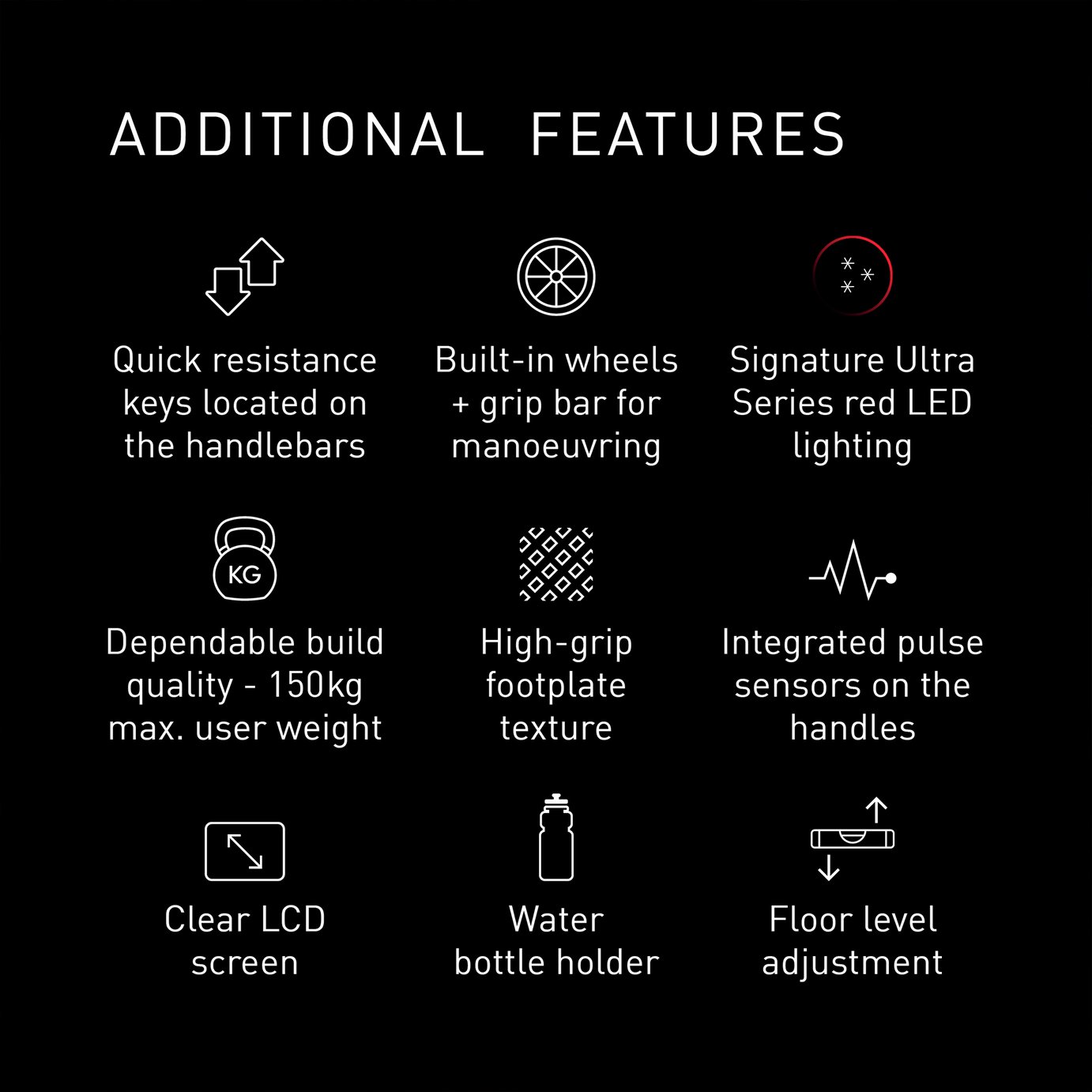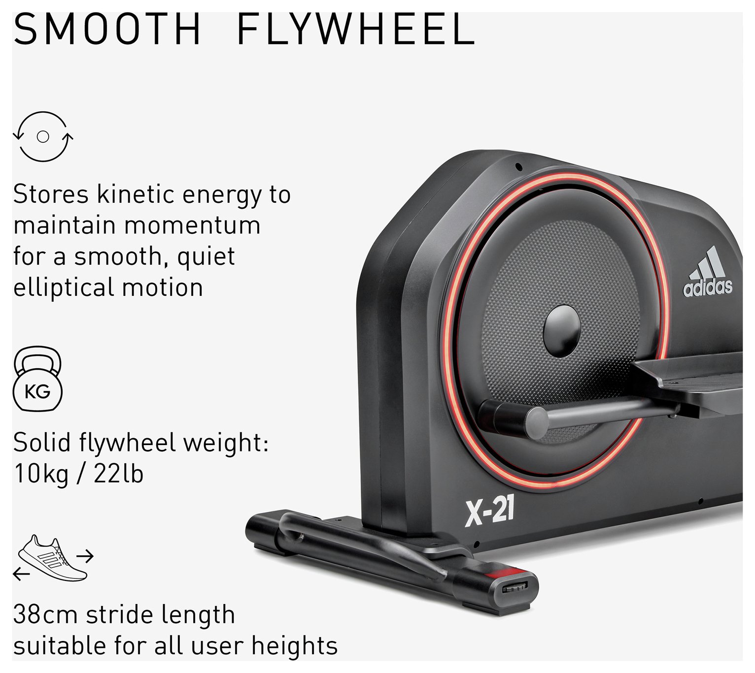 The Adidas X-21 Cross Trainer offers a smooth, low-impact full-body workout with a 10kg flywheel, 24 resistance levels, and 12 pre-set programs. Track your progress on the LCD display and enjoy features like built-in speakers, Bluetooth, and a tablet holder.